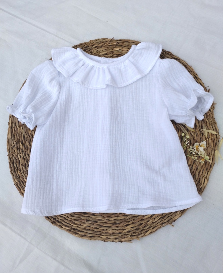 Camisa bambula blanca, cuello volante.