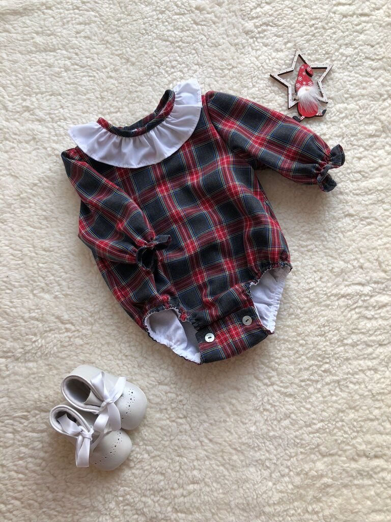Pelele confeccionado con tela tartán y forrado con algodón 100%.