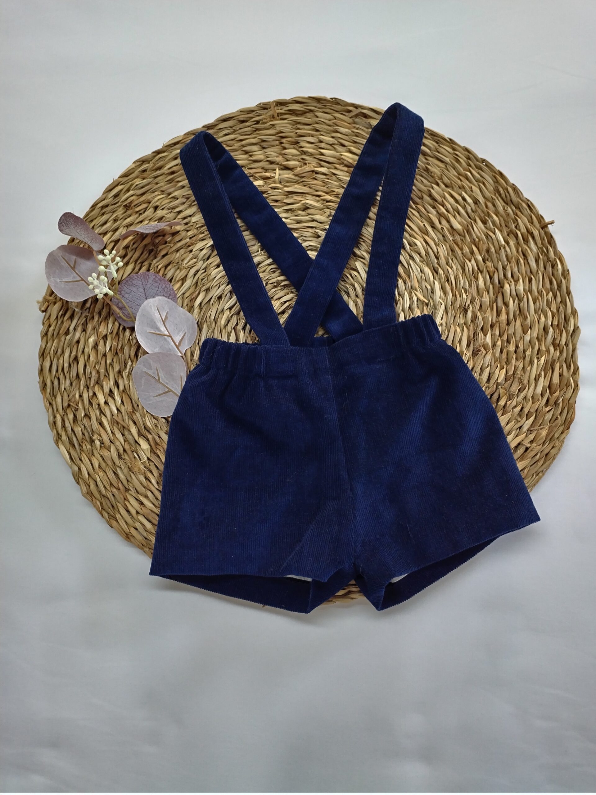 Pinocho tirantes confeccionado en pana azul marino.